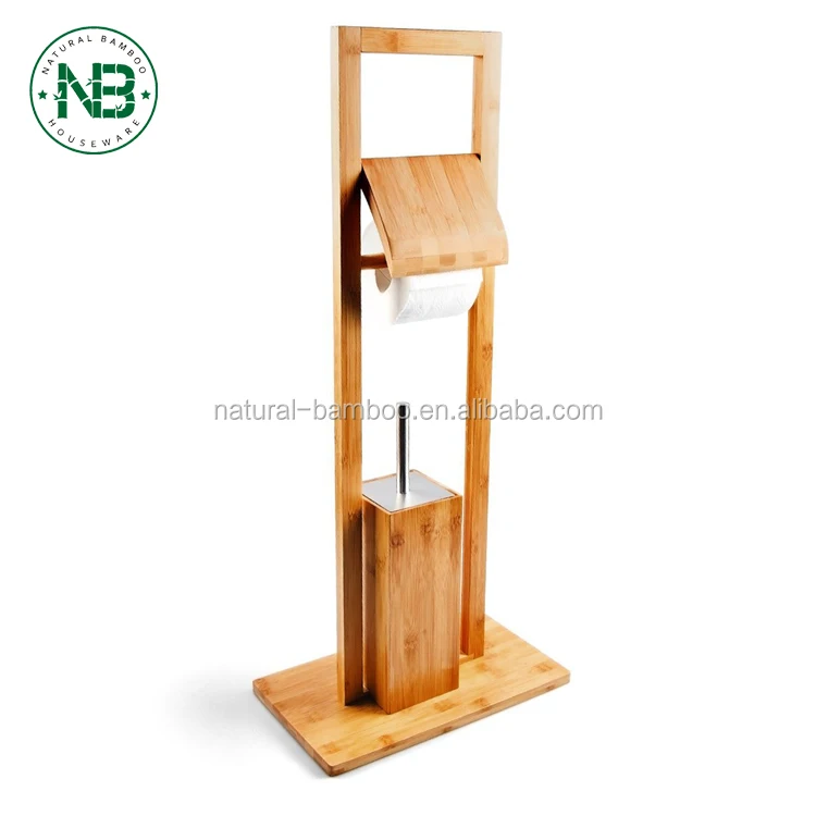 Bamboo Toilet Butler Brush Holder With Paper Holder Buy