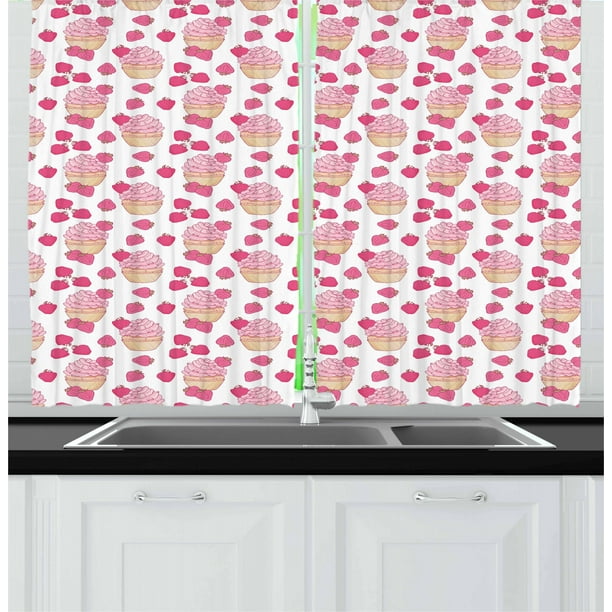 Cupcake Curtains 2 Panels Set Doodle Strawberry Baked Goods