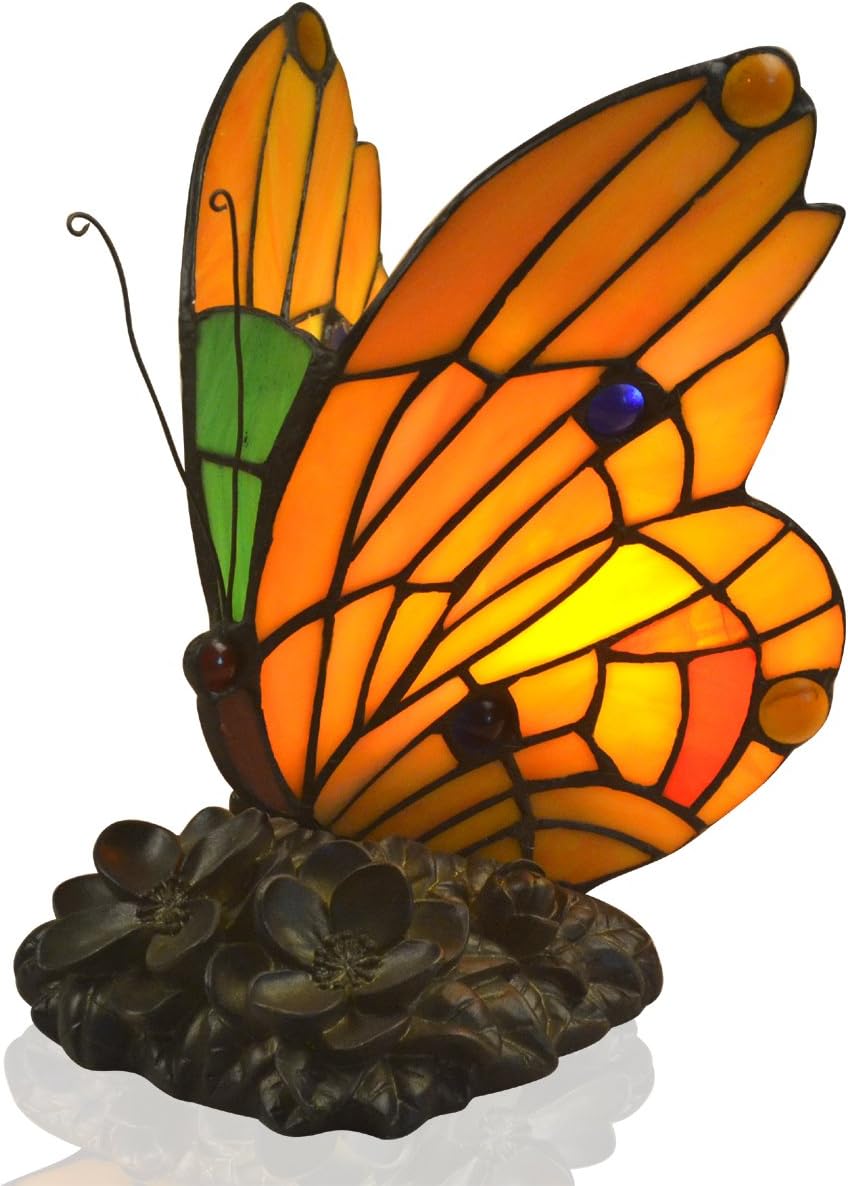 Yjmgrowing Tiffany Style Butterfly Accent Lamp Handmade Stained Glass Vintage Antique Light Decor Nightstand For Living Room Bedroom Bedside Night Lamp Gift 110 240v E14 44 X 46cm Amazon Co Uk Kitchen Home
