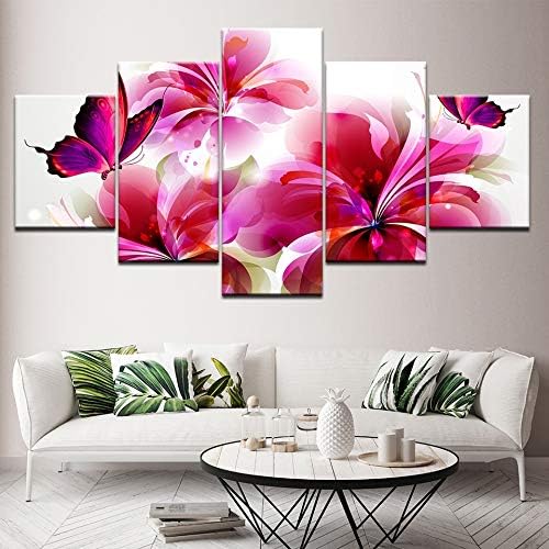 Pink Flowers With Butterflies Canvas Wall Art Floral Canvas