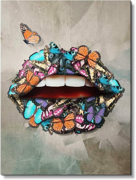 Amazon Com Ikonick Butterfly Lips Inspirational Canvas Wall Art