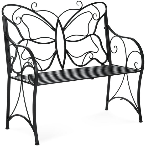 Black Metal Butterfly Garden Bench Black Ornate Wroght Metal