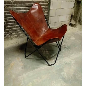 Leather And Iron Folding Butterfly Chair Industrial Leisure Chair