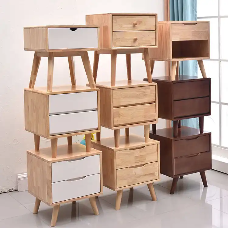 Movable Wood Bedroom Furniture Cabinet Bedside Table Aticgom