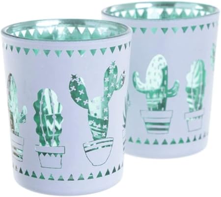 Set Of Two Cactus Glass Votive Candle Holders Amazon Co Uk