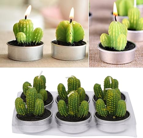 Ea Stone 6pcs Cactus Tealight Candle Long Burning Unscented Tea