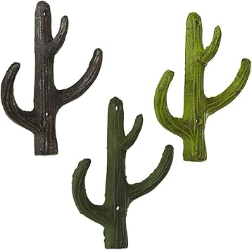 Amazon Com Set Of 3 Cast Iron Cactus Double Wall Hooks Hangers