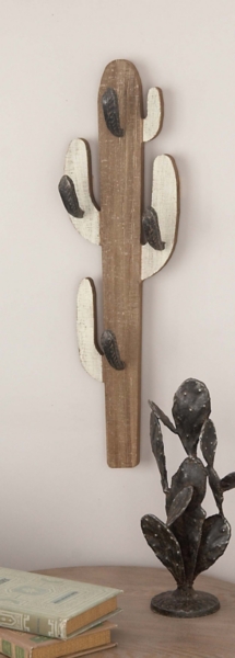 Rustic Southwestern Cactus Wall Hook Set 4 Coat Rack Hanging Cast