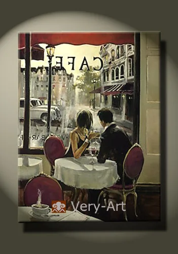 Hand Painted Modern Design Cafe Lovers Dating Street Scenery Oil