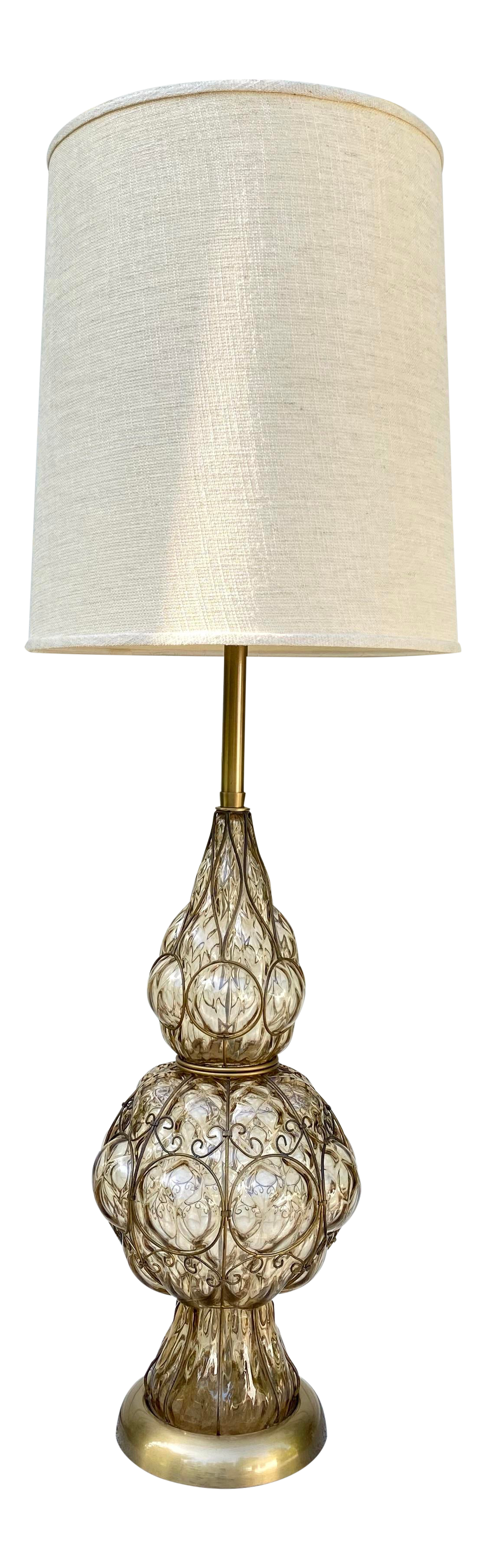 Large Venetian Caged Vintage Amber Glass Table Lamp Murano Italy