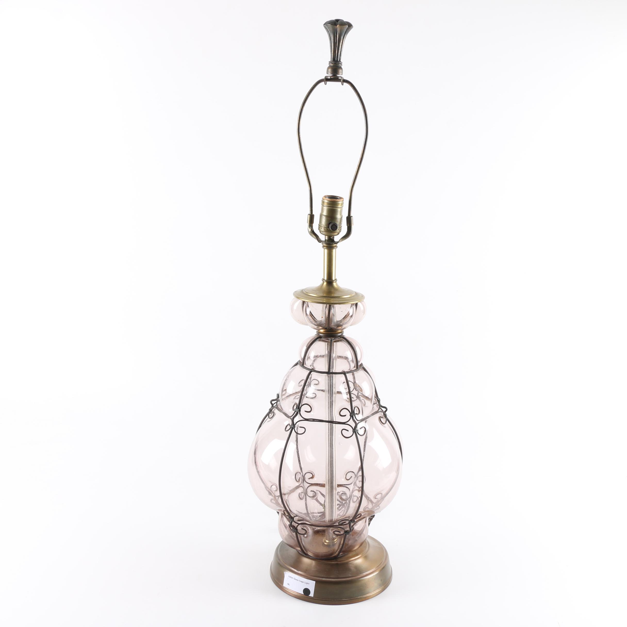 Vintage Italian Hand Blown Cage Art Glass Table Lamp Ebth