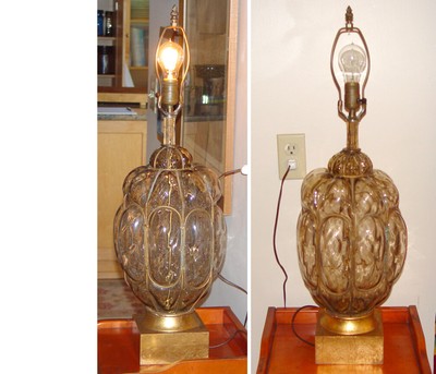 Vintage Mcm Hollywood Regency Cage Bubble Glass Table Lamp Etsy