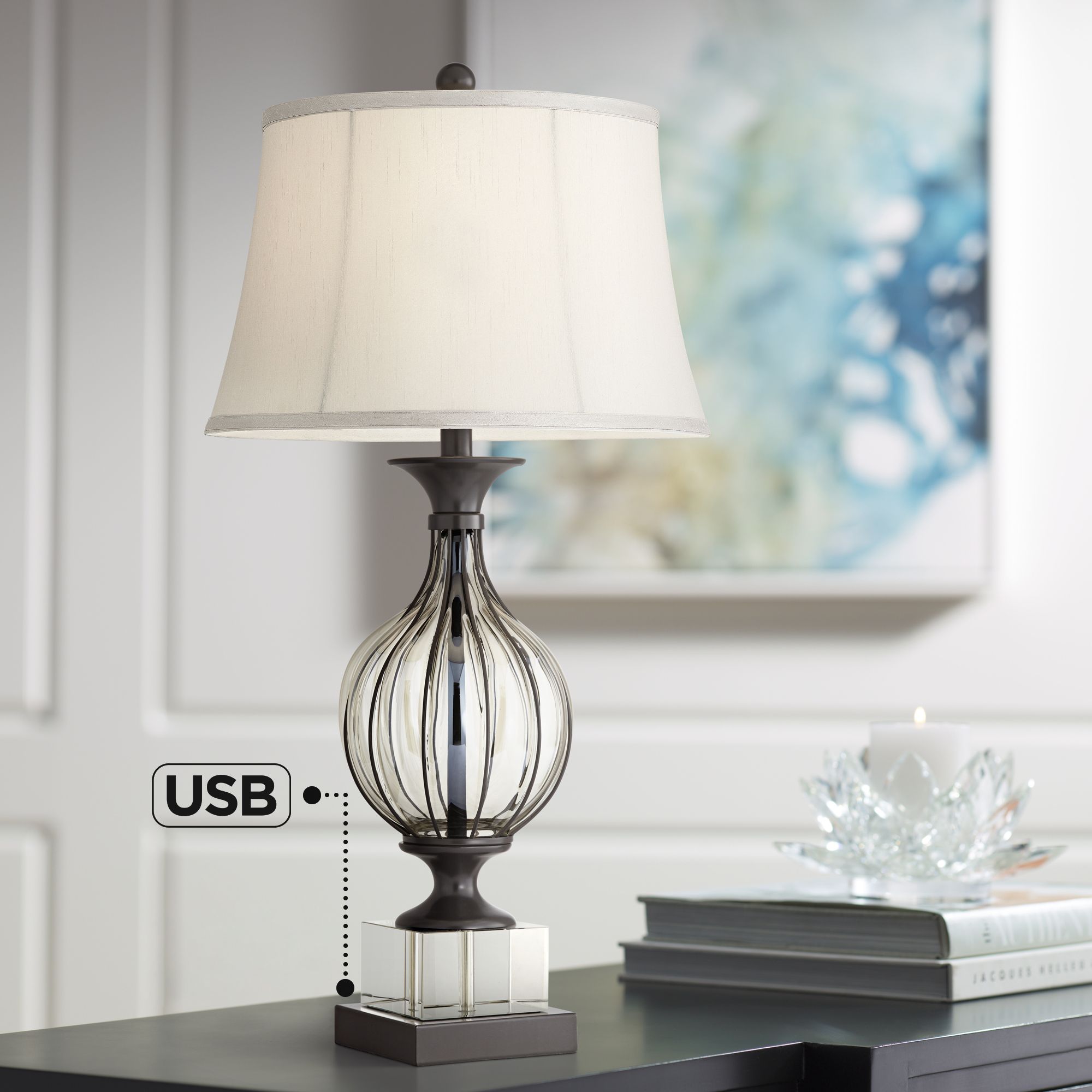 Alexandra Clear Glass Caged Table Lamp With Usb Port 66d63