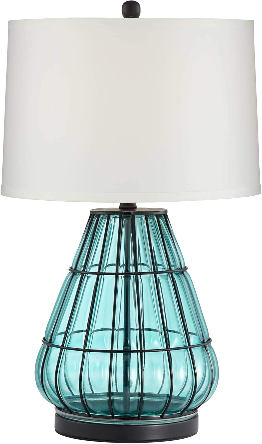 Jaylin Metal Cage And Aqua Glass Table Lamp Amazon Com