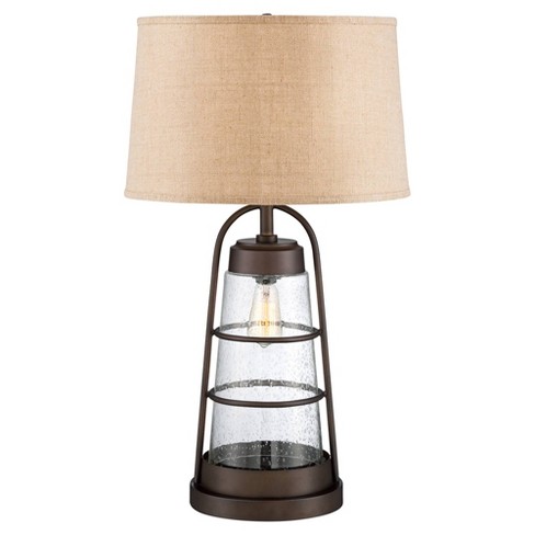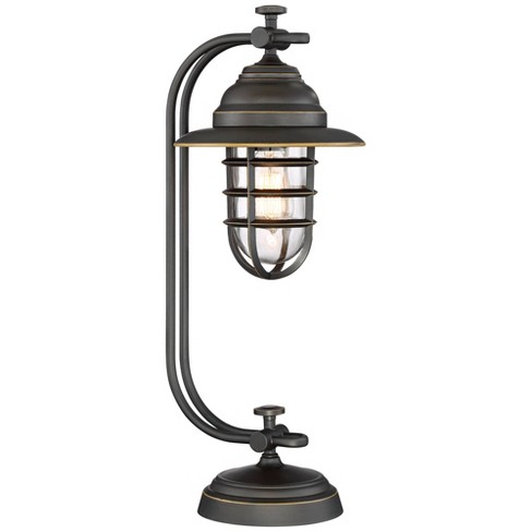 Industrial Table Lamp With Nightlight Bronze Cage Glass Lantern