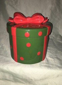 Cake Boss Christmas Ceramic Cookie Jar Green Red Bow Signed Buddy