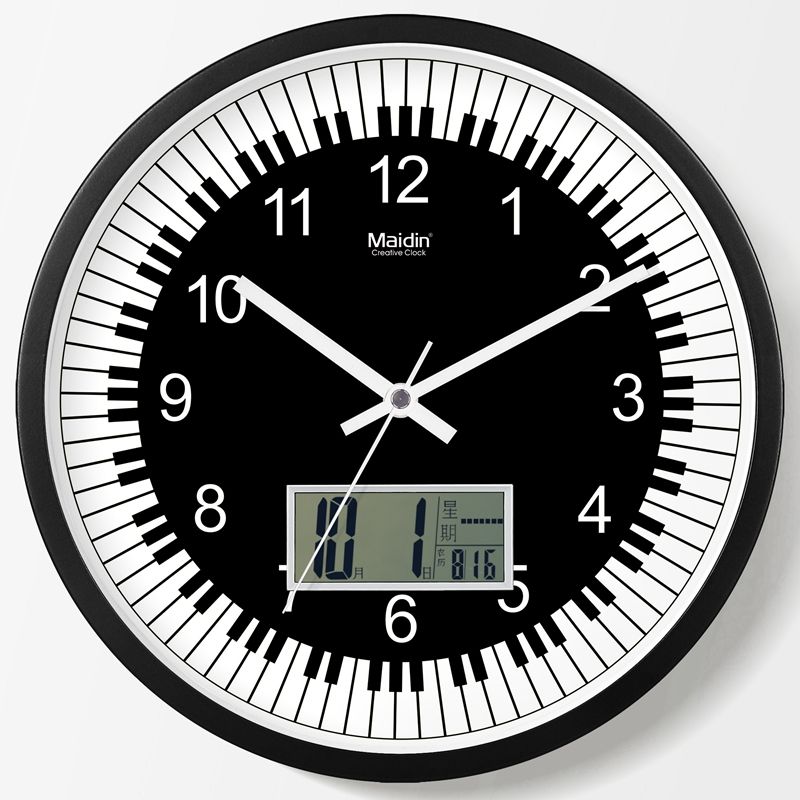 Elegant Analog Wall Clock With Digital Lcd Calendar Buy