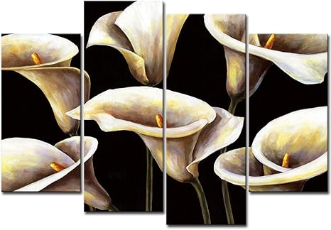 Amazon Com Dekhome 4 Piece Vintage Canvas Wall Art White Flower Prints Calla Lily Picture Paintings Modern Artwork
