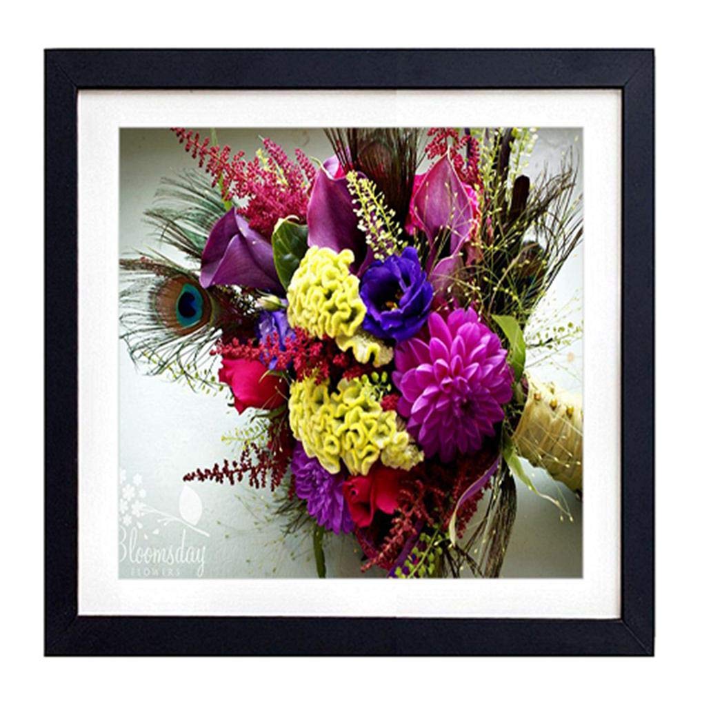 Amazon Com Framed Wall Art Dahlias Roses Calla Lilies Flowers Bouquet Design Composition Peacock Feathers Art