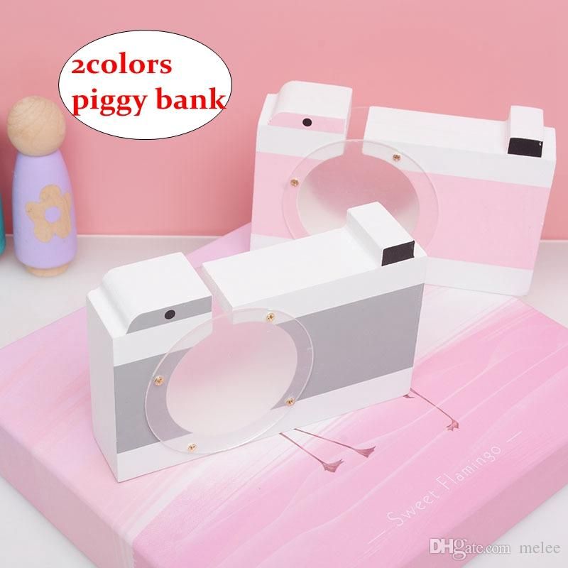 2020 Children Camera Piggy Bank Cute Wooden Money Coin Box