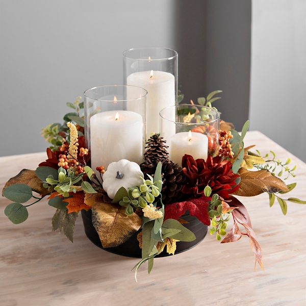 Pumpkin And Eucalyptus Floral Candle Centerpiece Kirklands