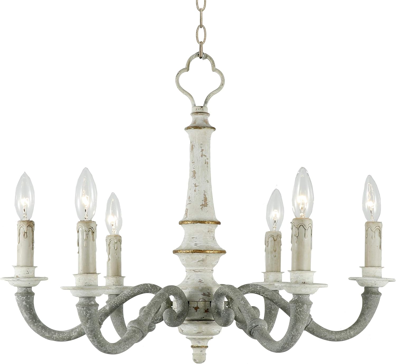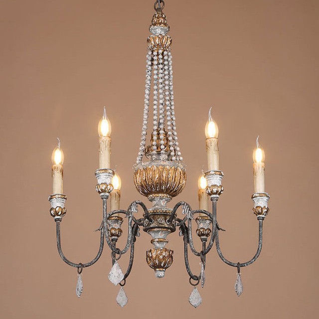French Country Wood Chandelier 6 Light Farmhouse Wooden Candle