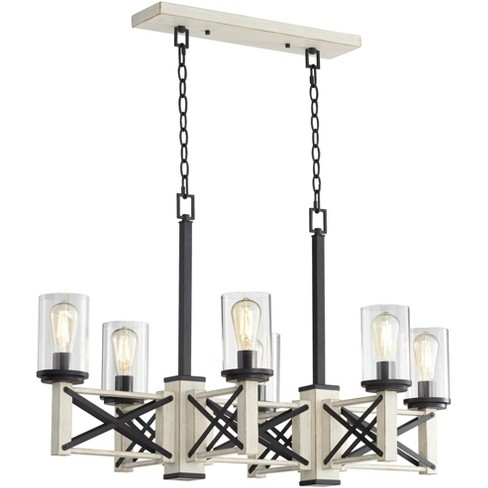 Franklin Iron Works Black White Wash Wood Linear Pendant