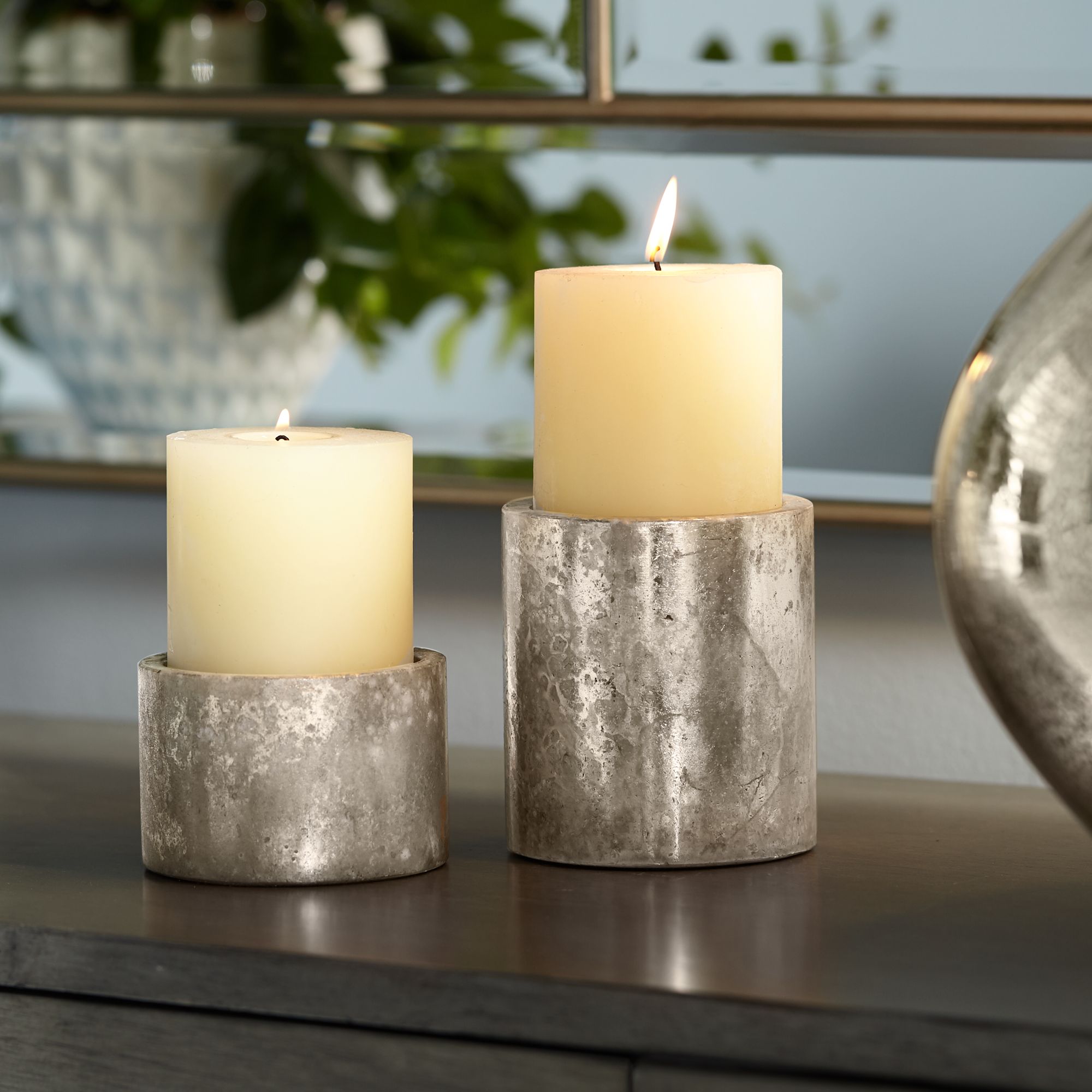 Nora Mirrored Candleholder Set Candle Holders Pillar Candle