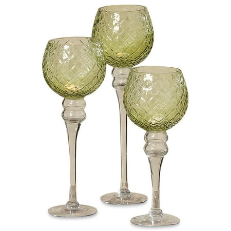 Set Of 3 Elegant Long Stem Glass Candle Holder Glass Vases Depot