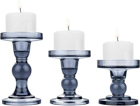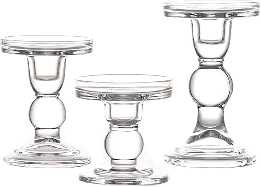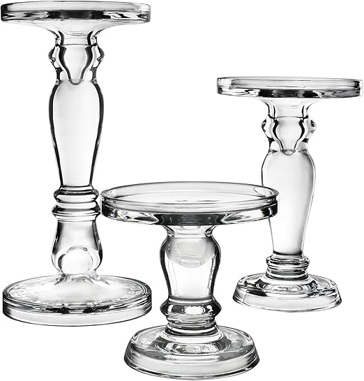 Classic Glass Candlesticks Pillar Taper Candle Holders 3 Piece