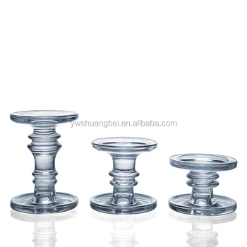 China Glass Pillar Candle Holders Set Of 3 Clear Solid Glass