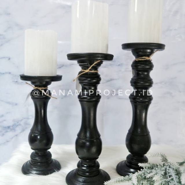Woww Muraah 3 Buah Wooden Candle Holder 1 Set 3 Pcs S M L