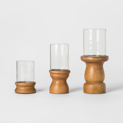 Wooden Candle Holder Set Of 3 Brown Threshold Target