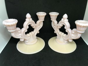 Vintage Cambridge Glass Pink Crown Tuscan Candleabra Candle Holder