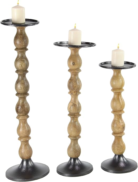 Amazon Com Deco 79 Candle Holder Sets Medium Brown Home Kitchen