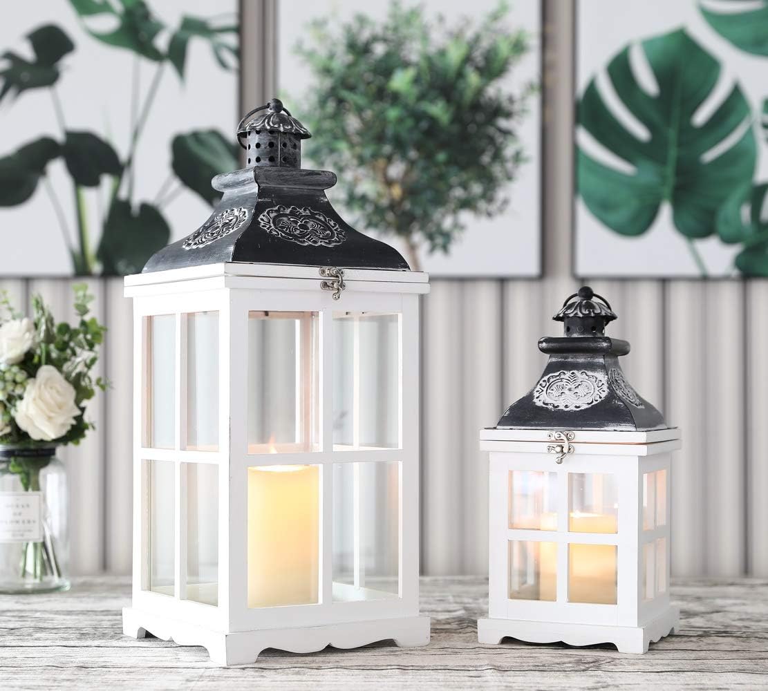 Amazon Com Jhy Design Set Of 2 White Wood Decorative Candle Lanterns 21 5 14 High Metal Lanterns For Indoor Outdoor Events Parities And Weddings Vintage Style
