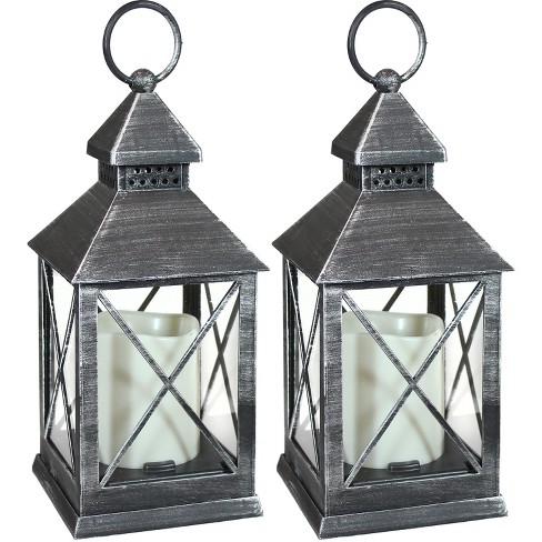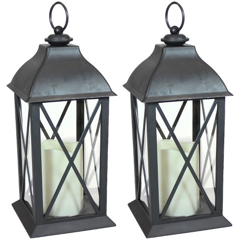 2ct 10 Lexington Plastic And Glass Battery Operated Indoor Led Candle Lantern Black Sunnydaze Decor Target