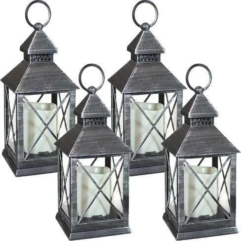 4ct 10 Yorktown Plastic And Glass Battery Operated Indoor Led Candle Lantern Gray Sunnydaze Decor Target