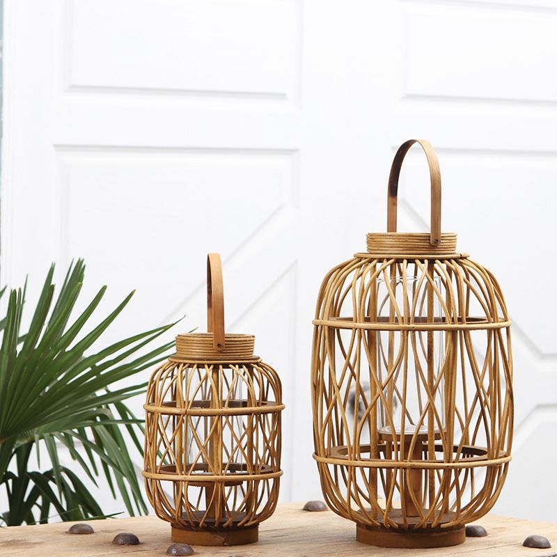 Naturn Woven Rattan Candle Lantern With Glass Cylinder Traditional Chinese Hurricane Lamp Creative Home Decor Handicraft Gifts Brass Candle Holder Brass Candle