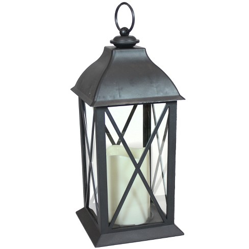 13 In Rustic Gray Iron And Glass Flourish Candle Lantern 52900