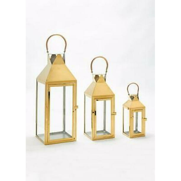 Set Of 3 Decorative Gold Metal Candle Lanterns Walmart Com