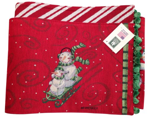 Mww Frosty Snowman Christmas Candy Cane Striped Lined Table Runner