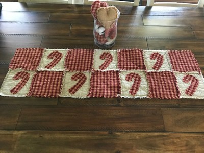 Plaid Primitive Rag Quilt Table Runner Red Tan Christmas Candy
