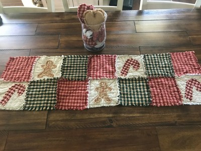 Farmhouse Primitive Rag Quilt Table Runner Christmas Gingerbread
