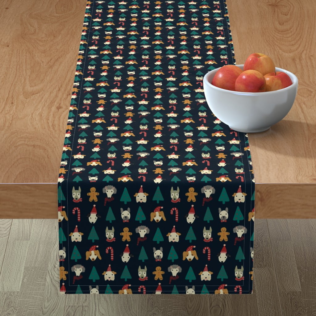 Table Runner Christmas Dogs Holiday Black Gingerbread Candy Cane