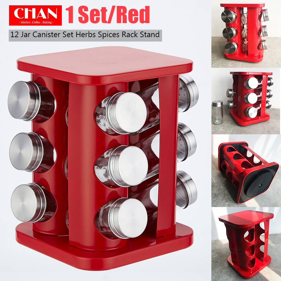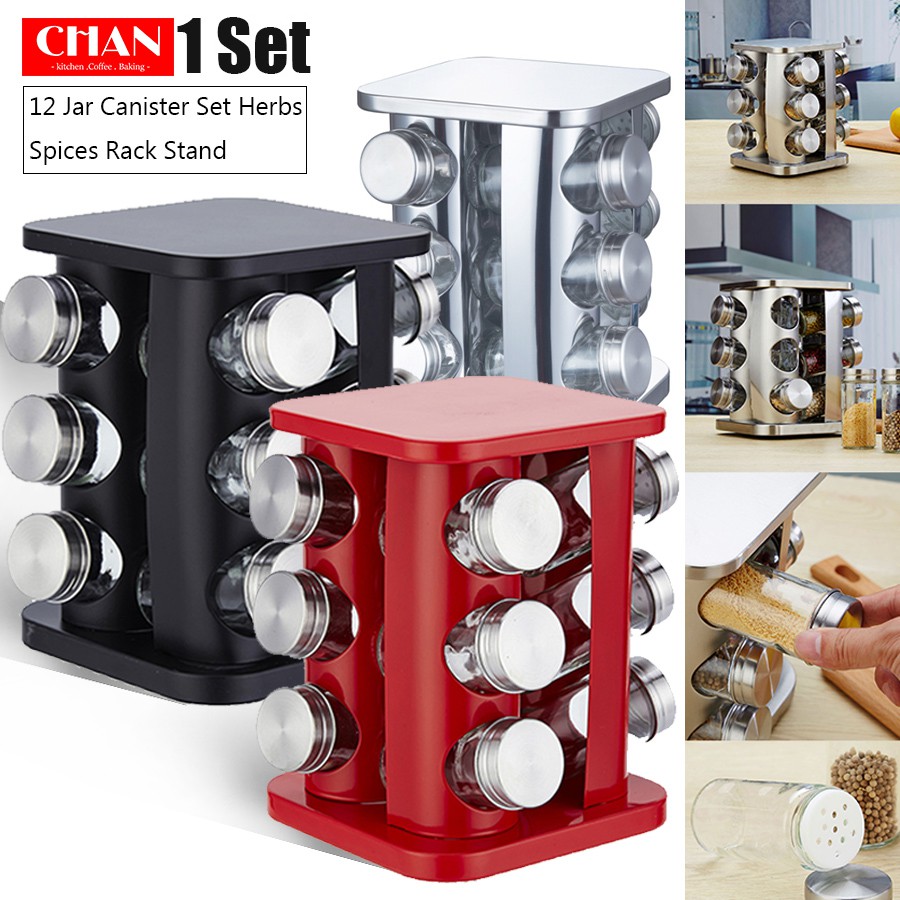 Stainless Steel 12 Jar Canister Set Herbs Spices Rack Stand Seasoning Container 3 Tier With Turnable Holder Shopee Singapore