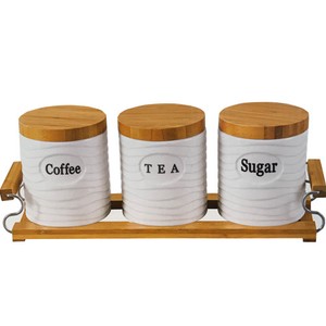 Attractive Set Of Three 3 Ceramic Canisters With Natural Bamboo Lid And Stand Twisted Shape Coffee Tea Sugar Canister Set By Gift Home Usa Amazon Ca Home Kitchen