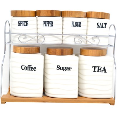 Set Of 7 Ceramic Canister Coffee Tea Sugar Stand Kitchen Storage Curve Container Ebay
