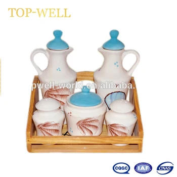 5pcs Kichen Spice Canister Set With Wooden Stand Buy Spices Canister Set Ceramic Oil Vinegar Salt Pepper Set Specialty Bottles Jars Product On Alibaba Com