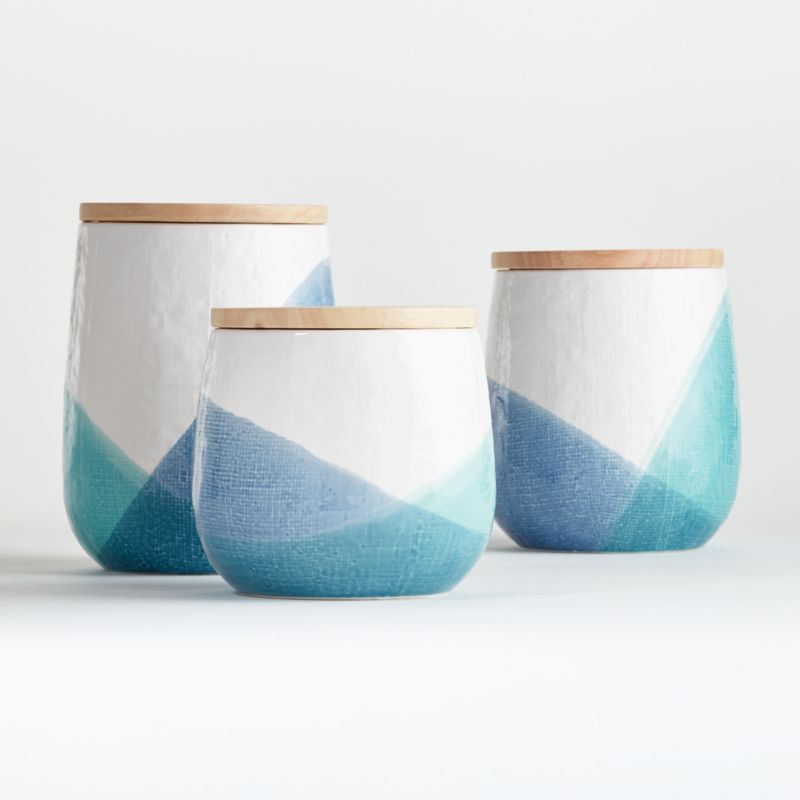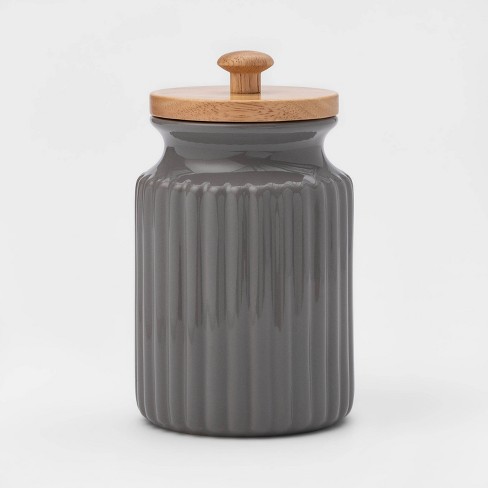 Textured Ceramic Storage Canisters With Wood Lids Set Of 3 World Market